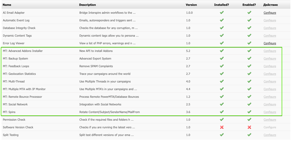В комплекте с Interspire Email Marketer поставляется полный комплект модулей расширения от Maborak Technologies: