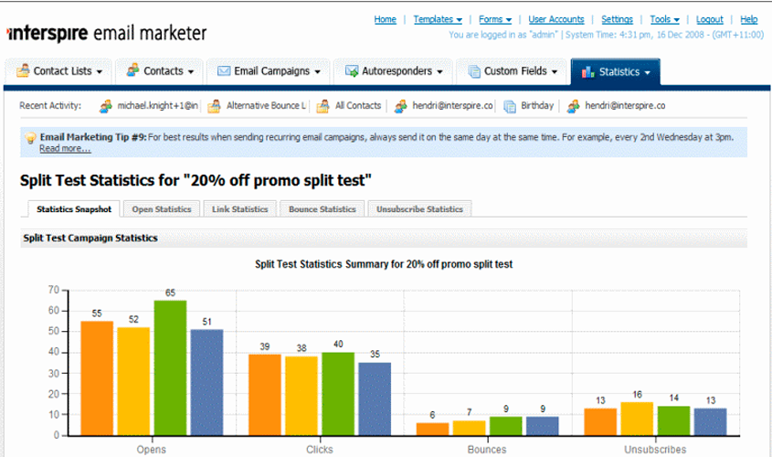 Interspire Email Marketer — это профессиональный скрипт для управления email-рассылками, который многие годы используется как стандарт в сфере самостоятельных рассылок. Он позволяет создавать, планировать и автоматизировать кампании, работать с базами подписчиков, сегментировать аудиторию и отслеживать статистику по открытию и кликам. Работает с любым типом smtp - PMTA, MailerQ.