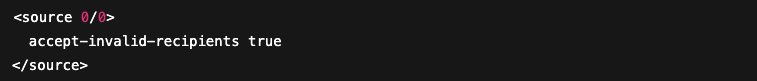 — блок источника (применяется ко всем IP и портам).accept-invalid-recipients true
